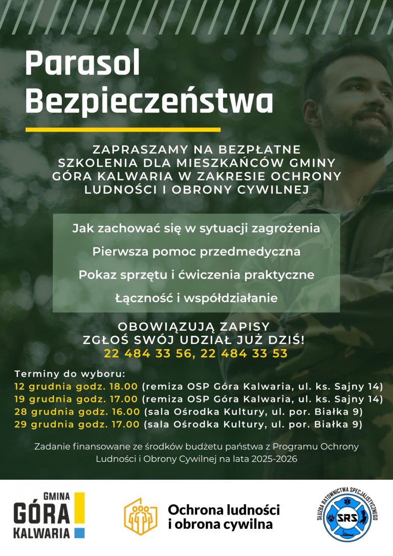 Rozpoczynamy w naszej gminie cykl szkoleń, które wyposażą Cię w praktyczną wiedzę – od pierwszej pomocy i ratowania życia, po przygotowanie na sytuacje kryzysowe. Bo...