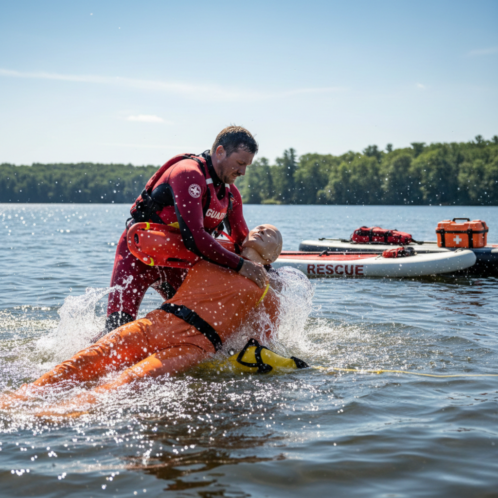 Praca nad wodą wymaga szczególnych umiejętności — szybkiej reakcji, opanowania i znajomości technik ratowniczych. Nasz kurs Ratownik Wodny przygotowuje do reagowania w sytuacjach bezpośredniego zagrożenia życia.